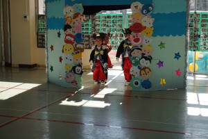 お遊戯室ではつつじ組(年少)のお遊戯を見てノリノリのお友達♪ 思わずジャンプ!!