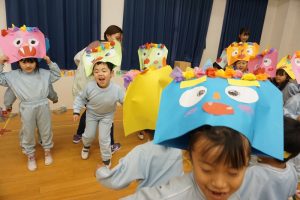 鬼さんをどうやってやっつけようか。と考える子。朝から鬼さんにドキドキしている子さまざまです。
