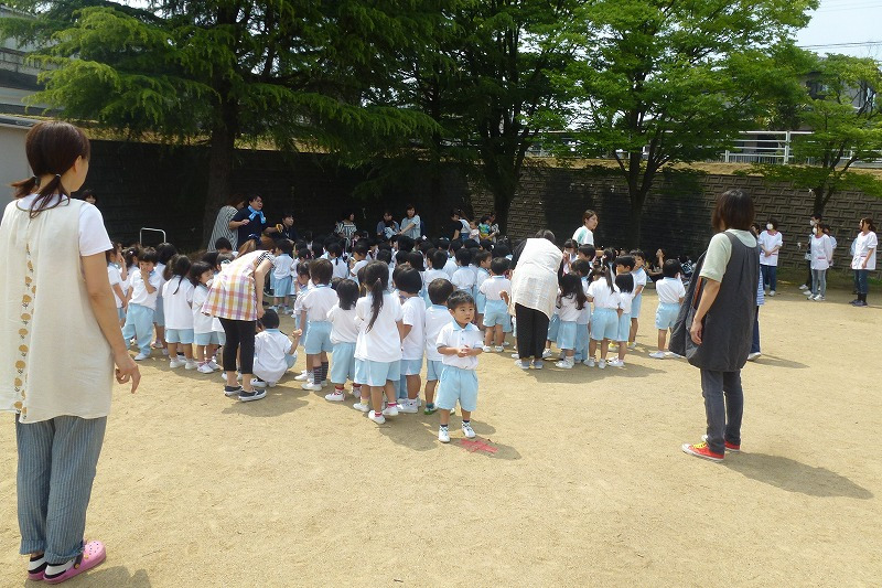 非常ベルの音を聞いて、先生の所に集まり、避難訓練をしました。